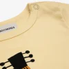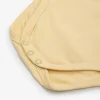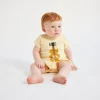 95% organic cotton, 5% elastane light yellow body. Designed with short sleeves, shoulder snap fastening, crotch snap fastening, slim fit and round neck.