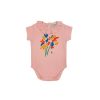 95% organic cotton, 5% elastane pink body. Designed with short sleeves, back snap fastening, crotch snap fastening, slim fit, round neck and ruffled detailing.